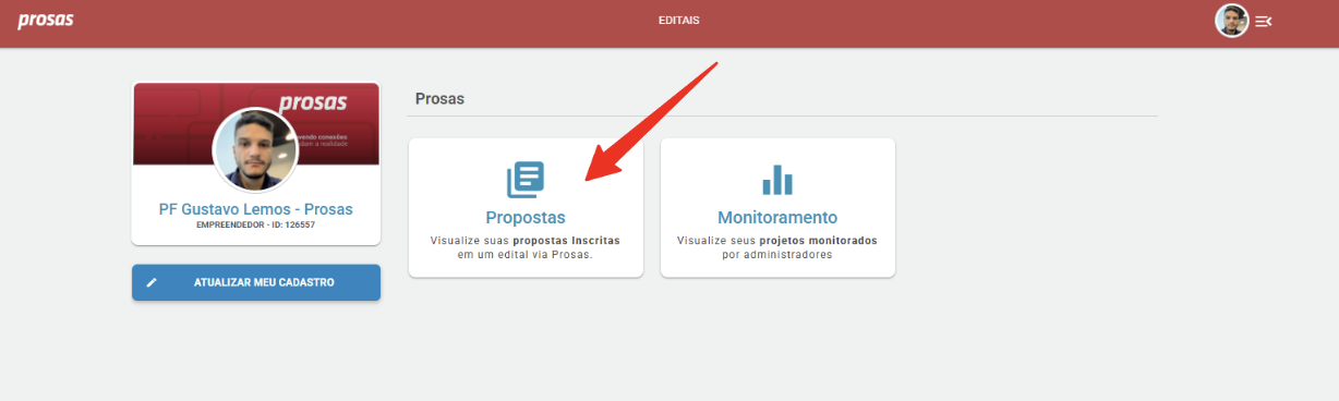 01. Na página inicial de seu perfil empreendedor, clique em “Propostas”